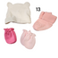 This adorable set is a must have for new parents. It contains a one size fits most beanie, a pair 1-3 year old booties and two pairs of one size fits most mittens.